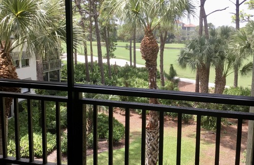 Our 3rd. floor condo is the largest floor plan available in Wild Pines. It features a large wrap around lanai. You are up in the palms with views of the golf course and pond. The lanai is breezy and has beautiful views. You will have easy access to the condo with an elevator to this 3rd. floor unit. Ample parking near the building.