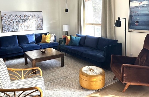 There are 2 rooms with king bed and Roku TV, one room with a queen bed and one room with two twins. 4 bedrooms in total, sleeping 8. Luxury linens and duvets are on all the beds. Extra wool blankets are in the closets for the cold winter nights.