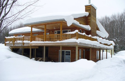 Large 4 bedroom, 2.5 bath, Cozy open concept, Great Room with Cathedral ceiling and gas fireplace. 65 " TV with Dish network. Lower family room with wood fireplace. Wrap around decking with charcoal BBQ. Good cell phone coverage for your WIFI hotspot.