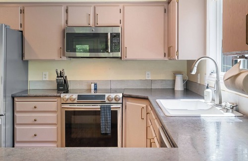 Large, open kitchen. Large kitchen appliances and ample cooking space and utensils. Breakfast bar and chairs to accommodate your whole group!