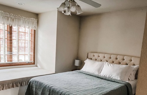 Our home has a king bed in a large master suite that includes a soaker tub, large shower, private gas fireplace, and heated bathroom floors. The suite also boasts a private outdoor deck with its own gas fire pit.