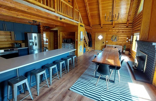This open concept, large log cabin is the perfect place to gather family and friends! With luxury amenities to please everyone and lots of space outside to spread out and play, this is a place where memories are made!