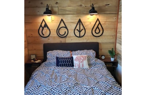The refurbished farmhouse on site will be rented separately, but will share the outdoor common area (fire pit, hammocks, picnic table, etc.) with guests who rent this cabin.