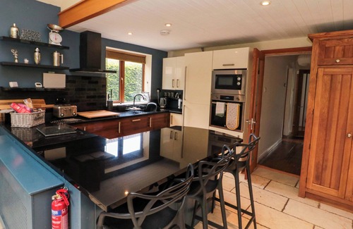 Lawnswood consists of a kitchen with an oven, hob, microwave, fridge/freezer, dishwasher, and breakfast bar seating, a dining area, and a sitting area with Smart TV and woodburning stove. The bedrooms consist of two ground-floor doubles, ground-floor twin with en-suite walk-in shower, and family room with double, two singles, and en-suite walk-in shower. There is a bathroom. WiFi, fuel, power, starter pack for woodburning stove, bed linen, and towels inc. in rent. Outside, there is a garden with lawn, furniture, barbecue, and summerhouse, a games room with Freeview TV and board games, ¾-acre wooded area, a private hot tub and private parking for three cars. Two well-behaved pets welcome, but sorry, no smoking. Escape to Lawnswood. Note: Washing machine and fridge/freezer located in hallway. Note: Restricted head height in the first-floor family room. Note: There are sloping banks in the grounds and a water feature. Note: Good Housekeeping Bond of 450GBP. Note: You can also book a beach chalet/hut per day at an additional cost to be arranged directly with the owner upon booking.