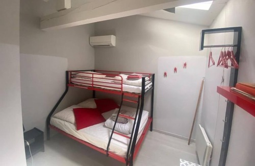 Sleeping room with 1 double bed. Sleeping room with 1 double bed and 1 bunk bed.