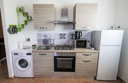 "Le Fiabe", 3-room apartment 55 m2, on the ground floor. Comfortable and modern furnishings: living/dining room with TV and air conditioning. Exit to the patio. 1 double bedroom with fan. 1 room with 2 beds and fan. Kitchenette (4 hot plates, oven, kettle, microwave, freezer, electric coffee machine). Shower/bidet/WC. Gas heating. Heating available only from 01.11. to 01.04. Patio 25 m2. Terrace furniture, deck chairs (2). Facilities: washing machine, safe, children's high chair, hair dryer. Internet (WiFi, free). Please note: private entrance, fire extinguisher. IT010059C2S6DL5V63