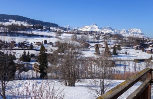 Residence "Le Sapin". On the outskirts, 2 km from the centre of Mégève, 3 km from the centre of Combloux, on a slope, 650 m from the skiing area, in the countryside. In the complex: storage room for skis. In Winter: please take snow chains. Stepped path (35 steps) to the house. Parking. Supermarket 1.7 km, restaurant 800 m, bus stop "Demi lune" 950 m, railway station "Sallanches" 10 km. Golf course (18 hole) 2.5 km, gondola lift 700 m, slopes 100 m. Nearby attractions: Megève 2 km, Mont-Blanc 38 km, Genève 64 km. Well-known ski regions can easily be reached: La Princesse. Please note: car recommended, no lift. Additional accommodations can be booked.