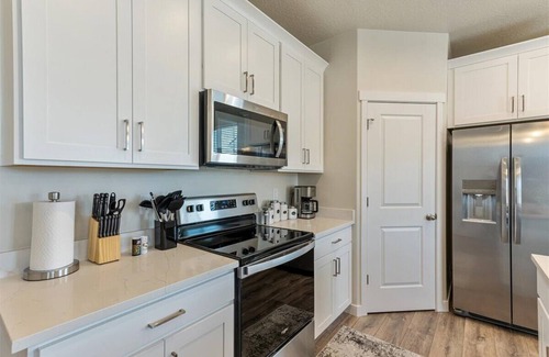 The kitchen offers stainless steel appliances and essentials for you to feel at home!