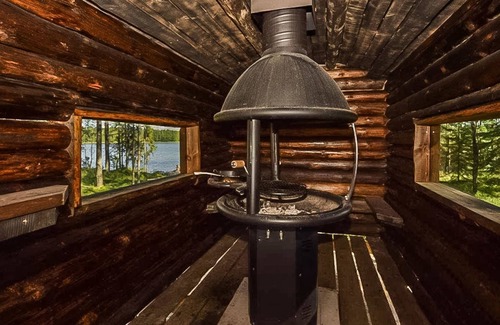 Well-equipped lakeside sauna building: fireplace room with sofa bed for 2, wine cabinet, air heat pump, steam room (wood stove) and shower.