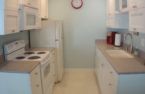 The condo feels fresh and clean with new everything! We have tile floors in the main living area/bathroom, and warmer wood floors in the bedroom. Sink into the new king size bed with high quality mattress and linens to feel totally cozy and comfortable. There is also a high quality, slipcovered queen sofa sleeper in the living room.