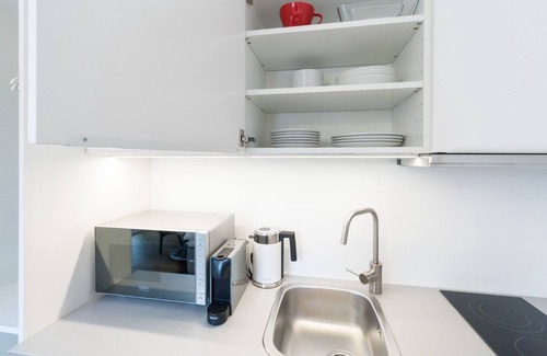The kitchen is equipped with an oven, a stovetop, and a refrigerator, as well as a coffee maker, an electric kettle, and a microwave. Bathroom amenities include a hair dryer, towels, and toilet paper. And you won't have to pack extra clothes, because you'll have a washer and dryer, too. Other amenities include bed sheets and heating.