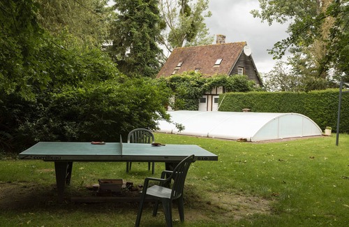 You are here in peace, in a beautiful countryside full of charm and very open to the fields and woods. This traditional house, with wooden frames, has been tastefully furnished while preserving all its authenticity. The atmosphere is warm, both in the living room open onto the terrace, bright, that side attic rooms upstairs. Just for you, a terrace and a private garden with furniture to enjoy sunbathing: very nice space where, facing the orchard, you feel far from everything, in a really peaceful atmosphere. Also a common area with 3 cottages, with a beautiful pool of 5x10 meters, covered and heated (open from May 15, 2023 to September 30, 2023 depending on the weather, the roof is not discovered), a friendly room with table football and wellness area with spa and sauna, accessible for your cottage by a WhatsApp booking link.