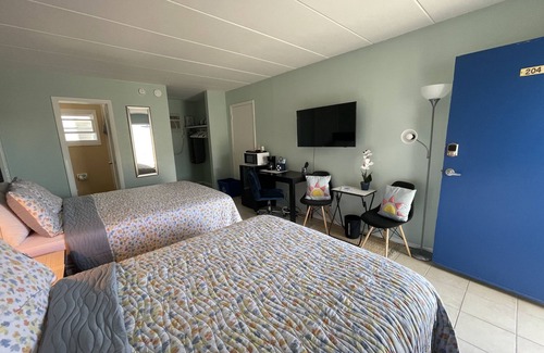 Block away from beach, charming and modest room in a small hotel. Walking distance to all attractions. One block away from Convention Center.Located right behind the famous Sea Shell Ice Cream Parlor.All our guests can enjoy a vouchers for the Sea Shell Ice Cream. Unfortunately parking is not provided, we only can use the Ice Cream place parking for unloading and loading guests luggage. However, parking was never an issue, because around us there is a plenty of free street parking!