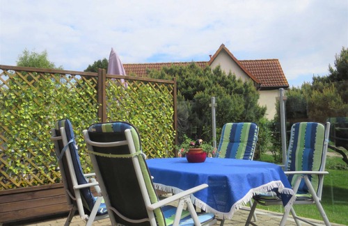 We rent a modern apartment on the ground floor of a residential building with 41 m². In the living room with TV and radio is a kitchenette. The master bedroom has a double bed and two single beds. A bathroom with shower and toilet and a terrace with barbecue facilities are also part of this Holiday. For your brought bikes a garaging is available. A parking space is located on the property. Travel cot and high chair can be rented on request to do so. The apartment is in a quiet location near the Achterwassers. The initial bed linen and towels included. Towels on request. In the apartment smoking is not allowed!