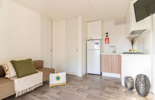 The perfect family holiday: located directly on the expansive beach of Rimini, the Rimini Family Resort offers everything you need for a wonderful break with your loved ones. Every family member can plan their days as they wish, because the park offers variety for young and old. You will stay in a comfortable and modern lodge that is equipped with everything you need for a pleasant stay. Some of them have a second bathroom. This is what the resort offers: - Reception - Restaurant, pizzeria, bar - Supermarket, bazaar, newsstand - Beach service on over 35,000 square meters of beach (service for a fee, subject to availability) - Dog beach, dog pool and exercise area - Water park (open from around mid-May to mid-September) - Bicycle rental (also e-bikes) - Animation, mini club - Laundry - Various sports facilities, such as fitness, table tennis and much more - Playground - 1 parking space per lodge You will receive a wristband with a cashless payment system on site - so you can easily shop for your purchases and souvenirs at any time. Various excursions and guided tours are also offered on site. The friendly team will help you with advice. It is the ideal destination to discover Rimini and its nightlife. But excursions into the surrounding area are also worth a trip: for example, go to San Marino, the tiny state whose historic center will inspire you.