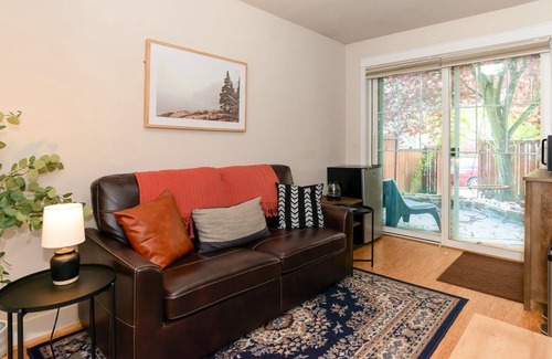 Enter your space through your own private entrance and make yourself at home in our freshly furnished unit. Your space is a private 1 bedroom, 1 bathroom suite complete with a Living Area with a sleeper sofa (full-size that can sleep 1-2 smaller people), convenient kitchenette (includes a mini-fridge, microwave, electric kettle, coffee maker & dishes/silverware!), TV, patio, & much more!