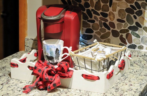 Baby Bear Cabin comfortably accommodates up to 12 guests. The open concept kitchen comes fully stocked with all your cooking needs.