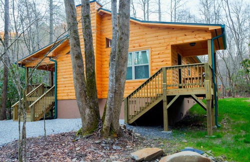 Log cabin located on Collett Creek in Andrews, NC. This cabin comes with full-size appliances including a washer and dryer, remote control gas fireplace, outdoor fire pit and hot tub equipped with waterfall and lounger. Come and enjoy the soothing sounds of Collett Creek rushing by your back deck. Enjoy the picturesque views of the Nantahala National Forest in your front yard. This is a mountain paradise!