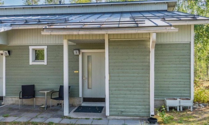 77 km north of Joensuu, 7 km to the village of Koli, pond Käränkälampi 180 m (length 2 km, width 1,5 km). Wooden row house flat, renovated in 1990 and updated in 2025. Kitchen-living room with 2 separate beds next to each others and convertible sofa (140 cm when extended), refrigerator with ice box. There are also a washroom, e sauna (elec. stove) and terrace. There is also an air cooler for warm weather.