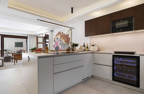 Welcome to our Lomas de Marbella Club Townhouse! Located in the sought-after Lomas de Marbella Club on the prestigious Golden Mile, this beautifully renovated 2-bedroom, 2-bathroom townhouse offers a unique mix of contemporary Scandinavian design and authentic Spanish charm. Set within a picturesque Andalusian-style urbanisation with whitewashed façades and manicured communal areas, the home enjoys a prime position just a 10-minute walk from the beach and Puente Romano’s vibrant dining and entertainment scene.Inside, the property features a fully equipped modern kitchen complete with a wine fridge, designer furniture, custom artwork, and a spacious open-plan layout perfect for relaxing or entertaining. Both bathrooms are designed with double vanities and luxurious rain showers, creating a spa-like atmosphere, while both bedrooms are bright, comfortable, and stylishly appointed. Throughout the home, you’ll find air conditioning, high-speed WiFi, and a Smart TV for added comfort and convenience.Outdoors, guests can enjoy two private terraces—one ideal for dining al fresco, the other set up as a chill-out area with outdoor sofas, parasols, and a BBQ. The main terrace offers direct views of the large communal pool, which is located just a few steps away and surrounded by beautifully landscaped gardens. Set within a quiet, secure, gated community, the property also benefits from street parking nearby and easy access to Marbella’s best beaches, golf courses, shops, and restaurants.Please note that we welcome families and couples only, no groups under 30, and no hen or stag parties. Should you fall outside of this category but wish to book nonetheless, please send us an enquiry detailing a bit more about yourself and the group that you will be travelling with so we can request this for you.We look forward to welcoming you!