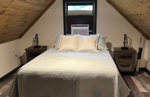 Your cozy getaway awaits in Ellijay at this delightful cottage. Riverfront on the Cartecay River. With 1 queen bed in the bedroom and 2 bathrooms, including a bathtub, guests will have plenty of space to relax. The living room also offers an additional sleeping option with a sofa bed. Our place will help you feel at home while you're traveling in Ellijay.