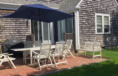 Charming home in the Naushop section of Nantucket. The house has 3 bedrooms, 2 full baths, a cozy living room with a gas fireplace. The fully equipped kitchen is eat in. The Den is the comfortable spot to watch TV. A rear brick patio has a table for your outdoor dining. There is also a gas grill and an outside shower. The gardens are professionally landscaped. It’s the perfect spot to spend your vacation on Nantucket. The Naushop neighborhood has a community pool, tennis courts and playground all for your use.