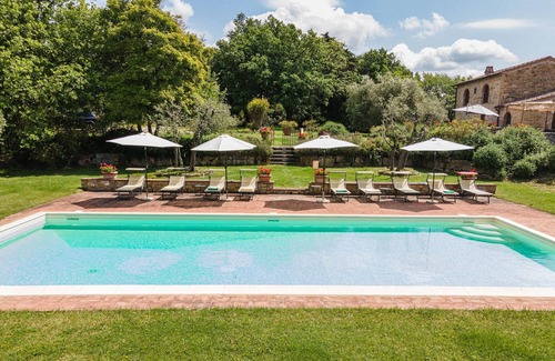 Beautiful natural stone house in the heart of Chianti Classico, in a wonderful position on a sunny hill with panoramic views over the valley, the vineyards and the surrounding countryside and about 1 km from the small village of San Donato in Poggio, which you can also reach on foot after a walk through the woods. Guests have at their disposal a spacious, well-kept garden with table and chairs, the beautiful swimming pool and a barbecue. The furnishings of this well-kept country residence are very tasteful and comfortable, reflecting the country style of this house. The location is ideal to explore the famous Chianti and to visit the fascinating art city of Florence, the latter reachable in about 25 minutes by car. Chianti is famous not only for its landscape of wonderful olive groves, vineyards and centuries-old holm oak and chestnut forests, but also for its ancient small hamlets, medieval castles and excellent wineries that have gained world fame in recent decades. The water quality of the pool is checked daily by the manager.