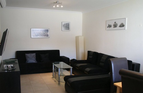 Composta por 2 quartos, 2 casas de banho, sala comum, cozinha completamente equipada, jardim privado, e 2 terraços. Estacionamento e wifi.