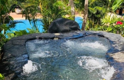 The hotel is located in La Guacima, Alajuela at only 6 km from the international airport. It offers private bedrooms with private bathroom each, a restaurant and chef services, pool and two outdoor hot tubs, gardens and lush tropical gardens, offering relaxation and excellent facilities for large groups, families, couples, and adventurers our staff is friendly and our service personalized. The property size is 3.5 acres, it is a great place for birdwatching, relaxing, to practice yoga, to massage the body in the hot tubs and enjoy the nature is the perfect place for large groups, families or friends who look for a nice place to start or end the perfect vacation in Costa Rica! Our staff, excellent facilities, different types of accommodation, food and tours makes this place the perfect option for everyone.