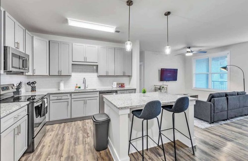 Stay in style in Durham, the dynamic city known as the "Startup Capital of the South." This elegant 1,332 sq. ft. 3-bedroom, 2-bathroom apartment is designed for comfort and convenience, featuring 1 King Bed & 4 Plush Full Beds, Lightning-Fast WiFi, a Dedicated Workstation, and a Fully Equipped Kitchen—perfect for extended stays. Nestled in the heart of Durham Central Park, you’ll be just steps away from top restaurants, cafés, bars, and boutique shops, immersing yourself in the city's energy.