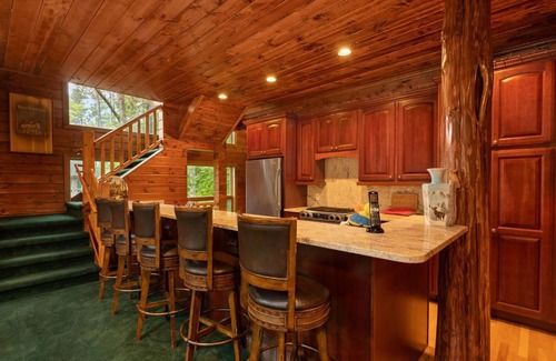 The charming carriage house has 4 bedrooms. The master suite takes the entire top floor and includes a gas burning stove,king sized burl wood bed, satellite TV, the bathroom has a full-sized Jacuzzi tub,two vanities,stand up shower with full body spray and euro glass. Two of the other bedrooms include their own unique king sized bed and full bathroom each finished uniquely in limestone and granite. The last bedroom is a bunk bed with queen sized mattress and has its own full bathroom uniquely in limestone and granite. The living room includes a large screen TV, natural burning three sided fireplace, dining room table for six and bar area that has five chairs. The kitchen is fully functional with full size refrigerator, stove,dishwasher, microwave and under counter ice maker.