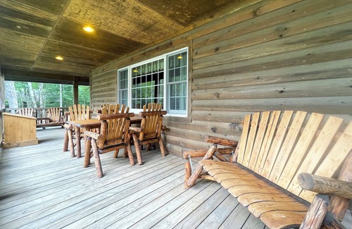 This magnificent non-smoking, two-bedroom, two-bath log cabin has a beautiful stone fireplace (gas fireplace, no wood needed) and a breathtaking view of the lake. Encircled by delicate birch trees, this spacious cottage is close to the beach and playground, with your private rowboat and dock a few steps away.