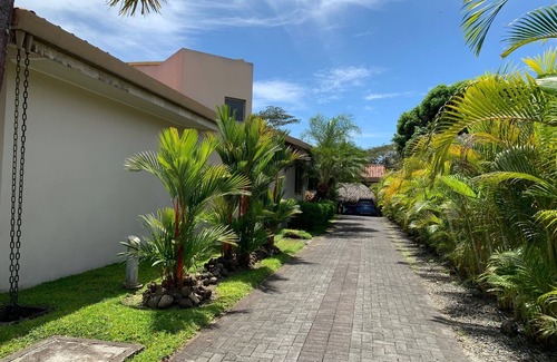 All spacious bedrooms with separate en suite bathrooms! Full kitchen and lots of outdoor seating to enjoy Costa Rican wildlife! A private outdoor gym, complete with boxing bag, stationary equipment, weights and a licensed personal trainer for an additional fee. Private tennis lessons available as well. Availability to join pickleball games at no cost. Pool is very private and back yard looks out on the golf course! Howler monkeys and macaws in your backyard! Peaceful area to enjoy nature... Good quality fire wood brick oven pizza on the beach of Los Delfines. Several restaurants a few minutes away. Gated community with 24 hour security guards. Owner is close by. Nightly rate is based on 6 people. Sleeps up to 10. Contact owner for additional rates.