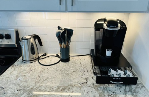 -Fully-equipped kitchen: Granite countertops, large island, Keurig coffee maker, & all essentials.
