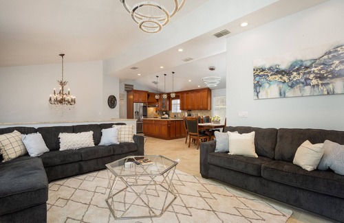 With 5 spacious bedrooms, 3 full bathrooms, TWO kitchens and TWO separate living rooms, this beautiful, spacious, luxury home is perfect for family gatherings and relaxing vacations with friends.