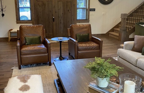 The main level has a large great room with vaulted ceilings and beam accents. An oversized sofa and accent chairs provide ample seating for evening gatherings around the fireplace or watching TV on the 55" screen. The gourmet kitchen is a chef's delight. With a 48" 6 burner cook-top and side griddle, meals are a snap no matter the size of your group. Double ovens, 2 dishwashers, 2 full-sized sinks, microwave, and a large kitchen island along with a fully stocked kitchen, dishes, pots, pans, utensils, etc keep you from slaving away in the kitchen and relaxing in no time. The large dining areas are split between 2 tables and have seating for 20 people plus additional island seating for 5.