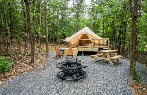 Luxury Camping with King Bed - Dogwood Tent is located in Great Cacapon. Luxury Camping with King Bed - Dogwood Tent provides accommodation, featuring Air Conditioner, Parking, Balcony/Terrace, among other amenities. This RV Rental features Air Conditioner, Parking, Balcony/Terrace, to make your stay a comfortable one.