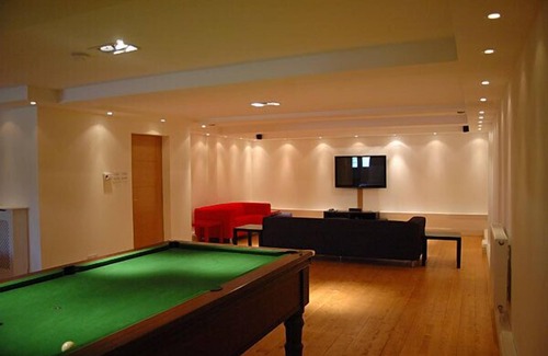 Luxury four-bedroom house located in a village setting a short distance from Stirling. The house, which comfortably sleeps 8 people, is an ideal base for large families, groups of friends looking for a luxury break or a special occasion. It features a large lounge with a wood-burning stove, a sun room with access to the upstairs patio area and the outside decking in the ample 1 acre garden and pond area with BBQ and outside furniture. Three of the bedrooms are en-suite while the fourth has use of the large downstairs bathroom. The large dining/kitchen (separate 8 seat dining room) features large free standing fridge/freezer and two double ovens. The house also features a large downstairs game's room which includes: pool table, table-tennis, Wii console, Play station 3 console as well as 42 and 50 inch televisions. There is ample parking for four vehicles and a two car garage.