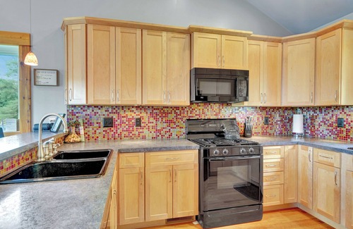 2 KITCHENS: Each is fully equipped, Keurig pod and percolator coffee pot, tea kettle, spices, dishware/flatware, breakfast bar w/seating. Free coffee pods and ground coffee.