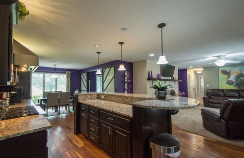 The University is your entertaining headquarters with over 4000 square feet of living space and more than ample parking (20 cars). This unique home sits on an acre of land right in West DesMoines/ Waukee area. Its location is pretty sweet, convenient to all the hot spots. Just a couple minutes to Hy-vee (large, beautiful grocery store), Jordan Creek mall and 6 other retail shopping centers, kid and teen fun spots like trampoline parks and entertainment arcade/restaurant complexes (SpareTime, Dave and Busters, Putts and Pins and The Operating Room), Smash Park, several golf courses, a plethora of restaurants pizza joints and steakhouses that rock... pretty much anything you want!