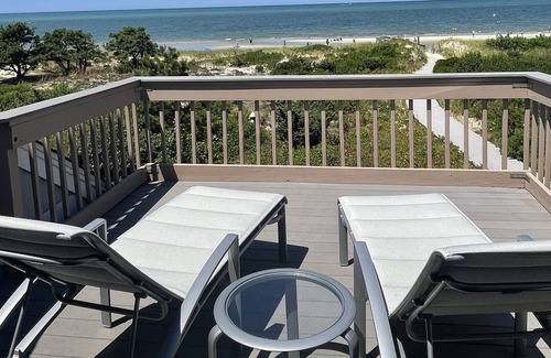 Modern luxury beachfront villa at Ocean Edge Resort on Cape Cod. Property has panoramic ocean & beach views (Brewster flats) with direct access to the beach, pool and tennis courts. Recently went through a high-end modern renovation.