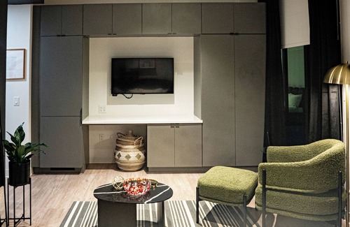 Step inside to discover a stylishly designed space inspired by luxury. The suite features a full kitchen equipped with all the appliances and utensils you need to whip up a gourmet meal, alongside a washer and dryer for your convenience. The bathroom boasts a walk-in shower, designed with a spa-like ambiance that will make you feel like you’re at a resort.