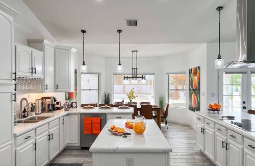 “This house was absolutely perfect in every way - and the newly finished and expanded outdoor space included Pickleball courts!!” – Tyler, ‘23 Immerse yourself in this ultimate mini-resort home for an unforgettable vacation. Take a dip in the sparkling pool and chill out on the loungers with a cold beer - on tap! Enjoy stunning indoor living spaces that enable you to spread out and spend quality time together, with enough room for privacy too. Ideally located for top Mesa attractions and beyond