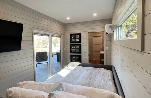 Escape to our one-of-a-kind oasis, where modern luxury meets Shipping Container Chic! Embrace the extraordinary in our 45 ft and 20 ft converted shipping containers. Modern design meets industrial flair for a truly unique stay. Nestled on 2 sprawling acres, our vacation rental offers a unique experience, including a 45 ft converted shipping container with a kitchenette, a bathroom that boasts a fun touch with a urinal for the boys, and an additional private 20 ft converted shipping container with queen bed.