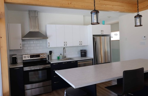 Outside, you can enjoy a private four-season hot tub, a fire pit area, a balcony/deck with a BBQ, and, depending on the season, access to a lake that’s perfect for swimming or water sports.