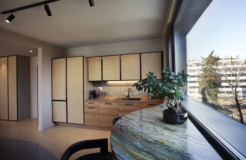 This spacious Suite features a 55-inch flat-screen TV, an integrated sound system, high-speed WI-FI, floor heating, climate control, and an in-room safe. The suite is full-equipped, from the cutlery and hand-blown LEHMANN wine glasses in the kitchen to the hairdryer in the bathroom. The Suite celebrates local Romanian artists and true craftsmanship.