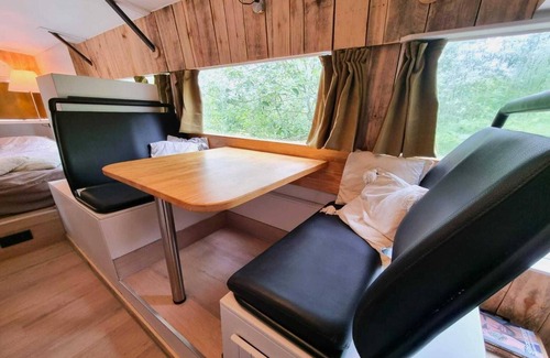 Dreaming of an original escape in nature? Discover Reebus, a former bus transformed into a luxury tiny house. Located in charming Liernieux, near Vielsalm, it offers the perfect mix of relaxation and adventure. Forget cramped camping! Reebus comfortably accommodates four people with a spacious double bed and a cozy bunk bed. You'll find a fully equipped kitchen, a bathroom with shower and toilet, plus a dining and sitting area. Enjoy a film via Wi-Fi or a DVD night. Step outside to your private chill-out area with sun loungers. Active options include jeux de boules, a treadmill, workout zone, and an outdoor sauna. Grill your favorites on the BBQ under starry skies, all in complete privacy. Enjoy board games and make memories with loved ones. The Liernieux area is a paradise for nature lovers, with beautiful hiking trails through vast forests for romantic strolls or sporty hikes. A car park right next to the bus ensures easy unloading. Escape the daily grind and book your unique Reebus experience now!
