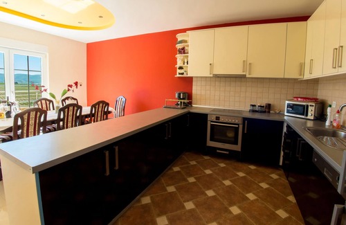 On their disposal, guests have four bedrooms. Two bedrooms are with queen sized beds, one with three single beds and last one with one single bed. Living room is spacious and has great flow with view on terrace and vineyards. If necessary, sofa in the living room can also be pulled out and adjusted for sleeping. Living room has flat screen cable TV. Fast Wi-Fi is available in every room. Kitchen is fully equipped, with fridge, oven, microwave, stovetop, coffee maker, kitchenware, cookware, dishes...There is also one smaller kitchen upstairs. There are two bathrooms with showers and one bathroom with toilet. Villa has two terraces, on one terrace there is a gas grill and on other barbecue where you can prepare meals anytime you want and enjoy sunsets with breathtaking view on vineyards. Private parking is also secured. The pool will provide you your privacy and amazing view on vineyards. Next to it you have a small garden with local fruits and summer kitchen as well, where you can organize small parties.