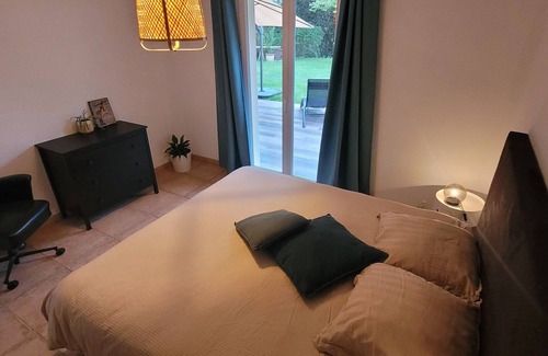 Magnificent 180m2 villa, heated pool, spa and quiet forest is located in Arcangues. Magnificent 180m2 villa, heated pool, spa and quiet forest provides accommodation, featuring Pool, Balcony/Terrace, Bedding/Linens, among other amenities. This Villa features Pool, Balcony/Terrace, Bedding/Linens, to make your stay a comfortable one.