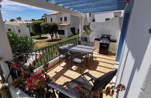 This property is a 2 bedroom, 6 persons, 2 bathroom furnished townhouse with terrace, in an excellent position on the luxury golf resort of Parque da Floresta, 15 minutes drive from Lagos.The Cottage is very well equipped. Also Wifi(fiber) and SMART TV. And heating by pellet burner. Also solarpanels , e,nergy friendly use.It has fabulous views over the resort to the ocean beyond.The spa with gym, indoor pool is also a walk away as are the outdoor pools (including childrens pool) with bar and snacks We are a 2 minutes walk from the spectacular championship 18 hole golf course - All guests receive 40% discount on golf green fees. At the Golf Clubhouse there is a top class restaurant and snacks are served at the Spikebar overlooking the 18th green. The resort also has driving range and golf practice facilities, floodlit tennis courts, archery range and horse riding is nearby. Also perfect for roadcycling or mountainbike.( Bike rental company Musette.bike at 7 minutes drive )There is an excellent Italian restaurant next to the resort reception which also does a takeaway pizza service. A few minutes away by car you have unspoilt beaches and small family restaurants. The village of Budens with a fully stocked supermarket is only 5 minutes drive as is the wonderful sandy beach of Salema. Also big supermarkets like Lidl and Aldi are in Villa Do Bispo at 7 minutes driving.
